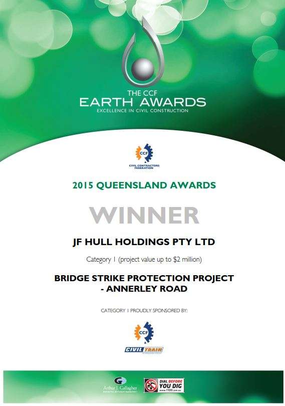 The project was awarded the 2015 Queensland CCF Earth Awards, Category 1 for excellence in civil construction.