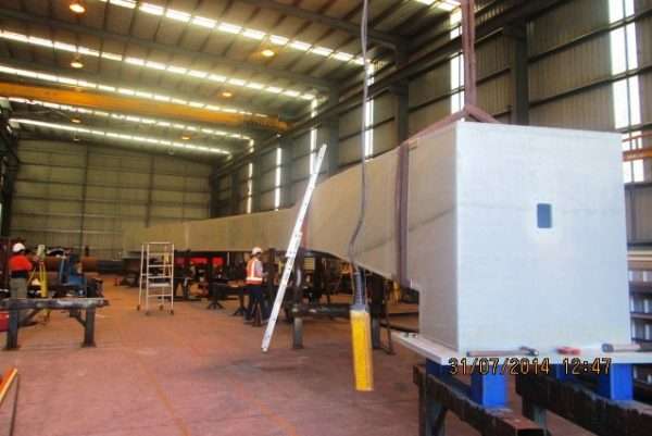 - Protection beam structures – box girders fabricated from 20mm thick plate spanning the full width of the roadway. Each beam was supported by a heavily reinforced pilecap below ground, supported by bored piles.