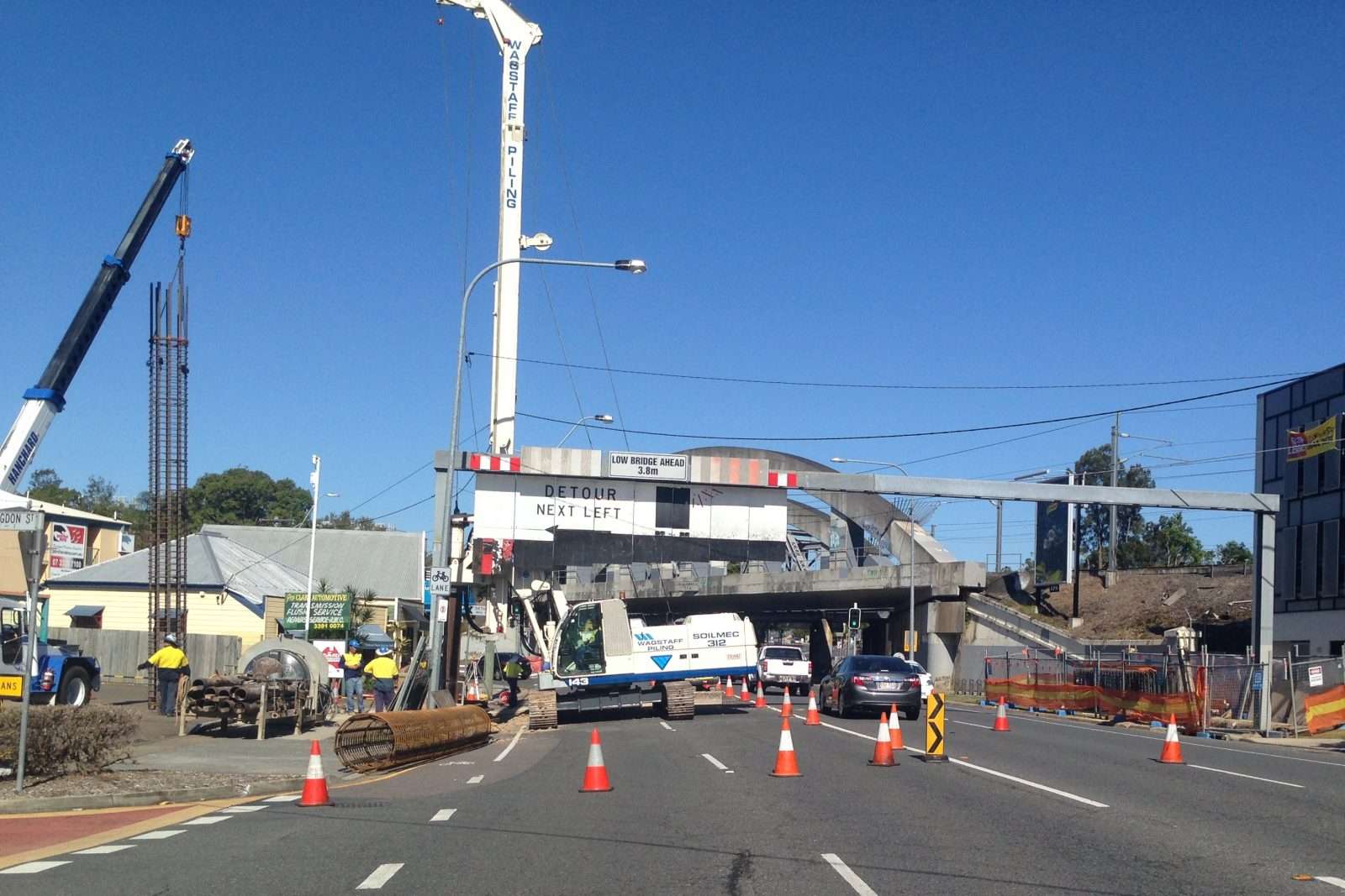 - Project involved daily traffic management to facilitate construction activities. Traffic closures and disruptions were maintained within Brisbane City Council requirements with a full closure, with detour, required only for the erection of the protection beam. At no stage throughout the project were traffic queues in excess of 5 minutes.