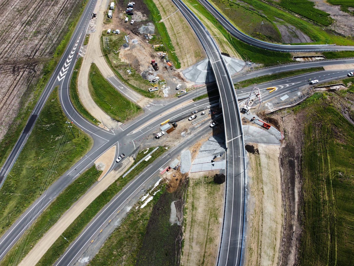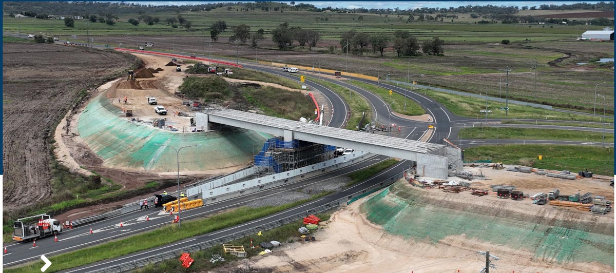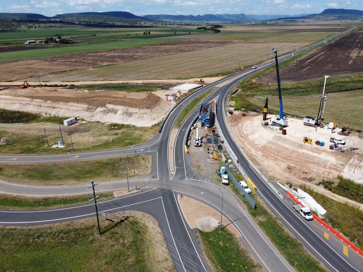 JF Hull were awarded the contract by TMR in early 2021 to complete the reconfiguration of the Cunningham Highway and New England Highway intersection (Eight Mile Intersection) to incorporate an overpass of the Cunningham Highway for southbound traffic.