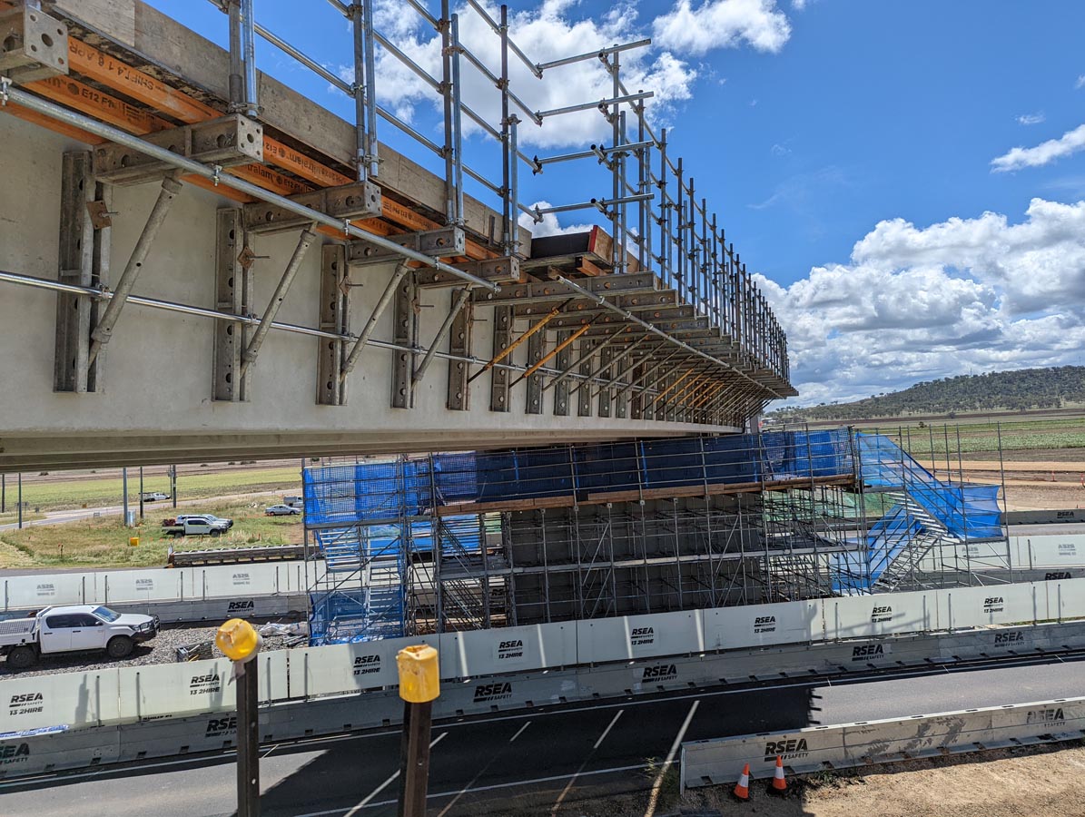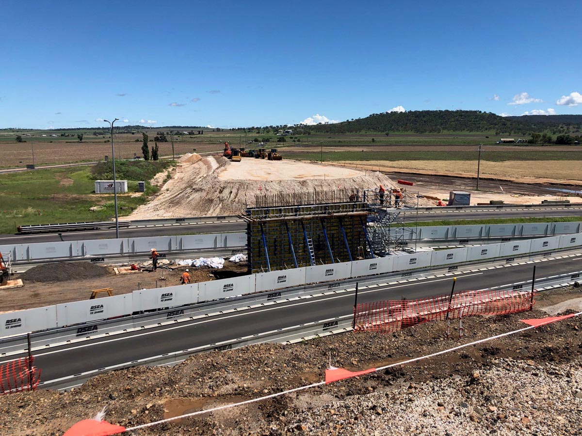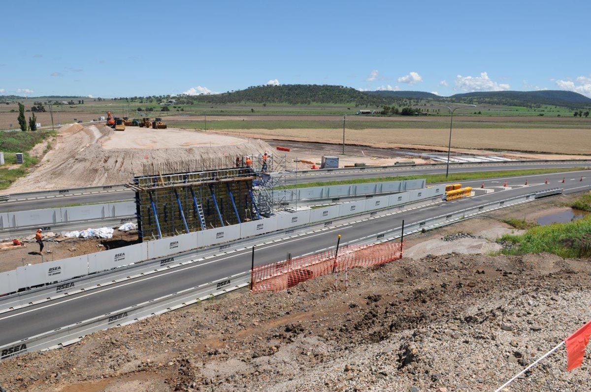 - Single lane overpass for traffic on the New England Highway travelling from Toowoomba to Warwick