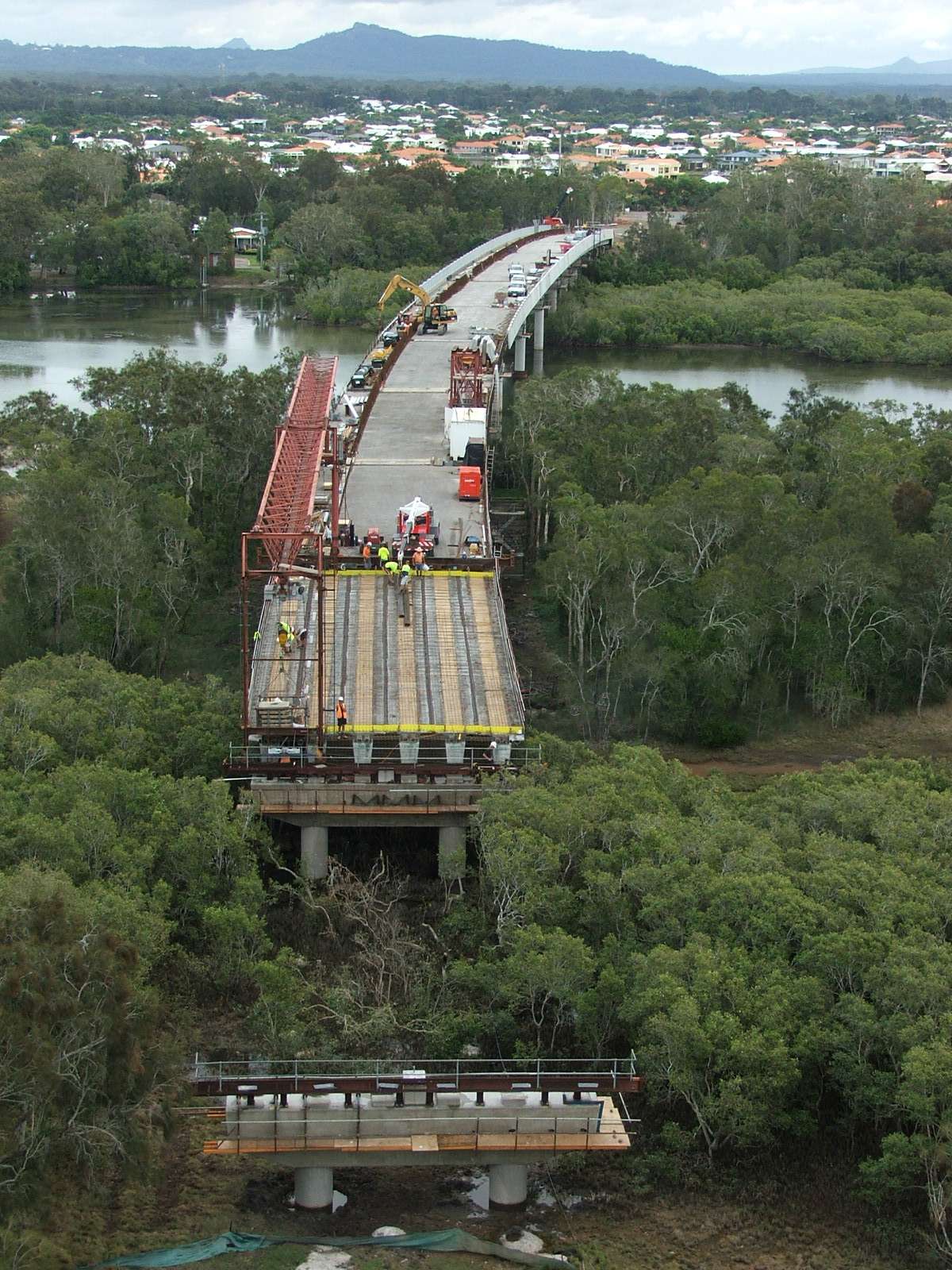 The package involved construction of a 17 span reinforced, 527m length concrete bridge with prestressed girders and insitu cast concrete deck over Weyba Creek and environmental sensitive wetlands.