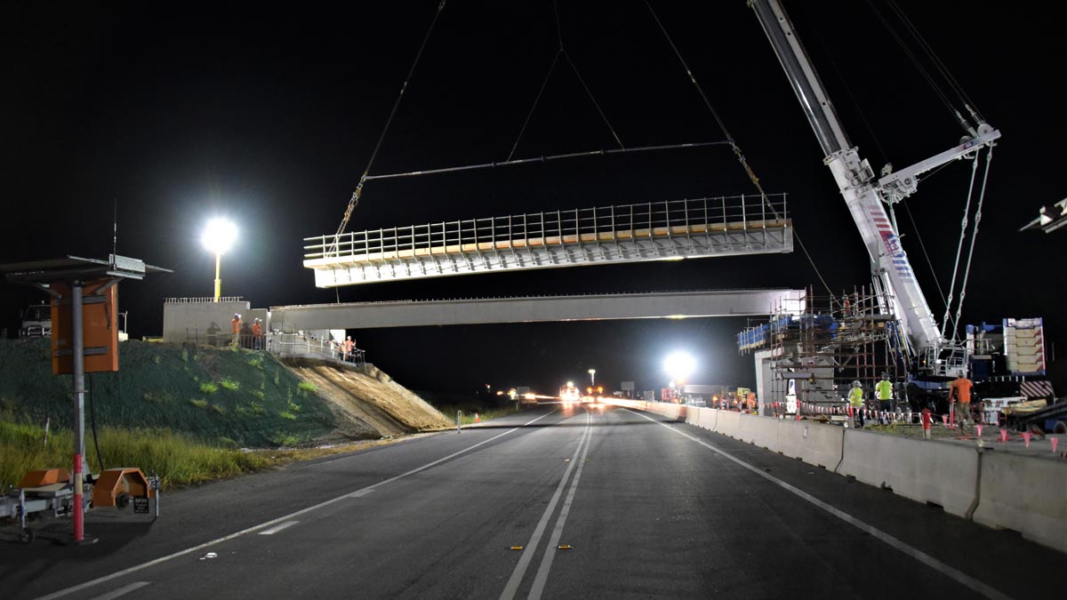 The bridges & associated earthworks (Portion B Section 5) were positioned over 14 floodplain openings, with three highway overpasses for local roads, one fauna crossing and one bridge over an existing waterway.