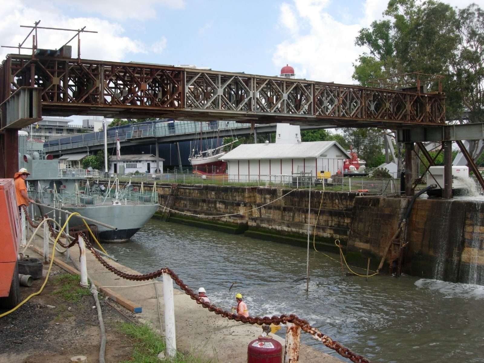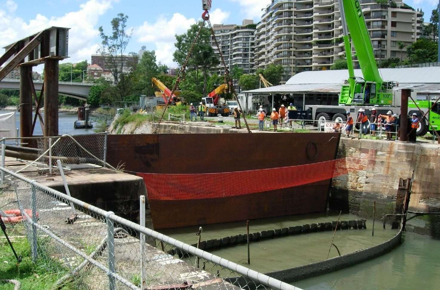 The project, for The Department of Public Works, was to replace the existing caisson gate at the Queensland Maritime Museum at Southbank. The existing caisson was badly damaged and had been leaking for a number of years, posing a risk to the decommissioned WW2 frigate HMAS Diamantina (1420t) on low tides.