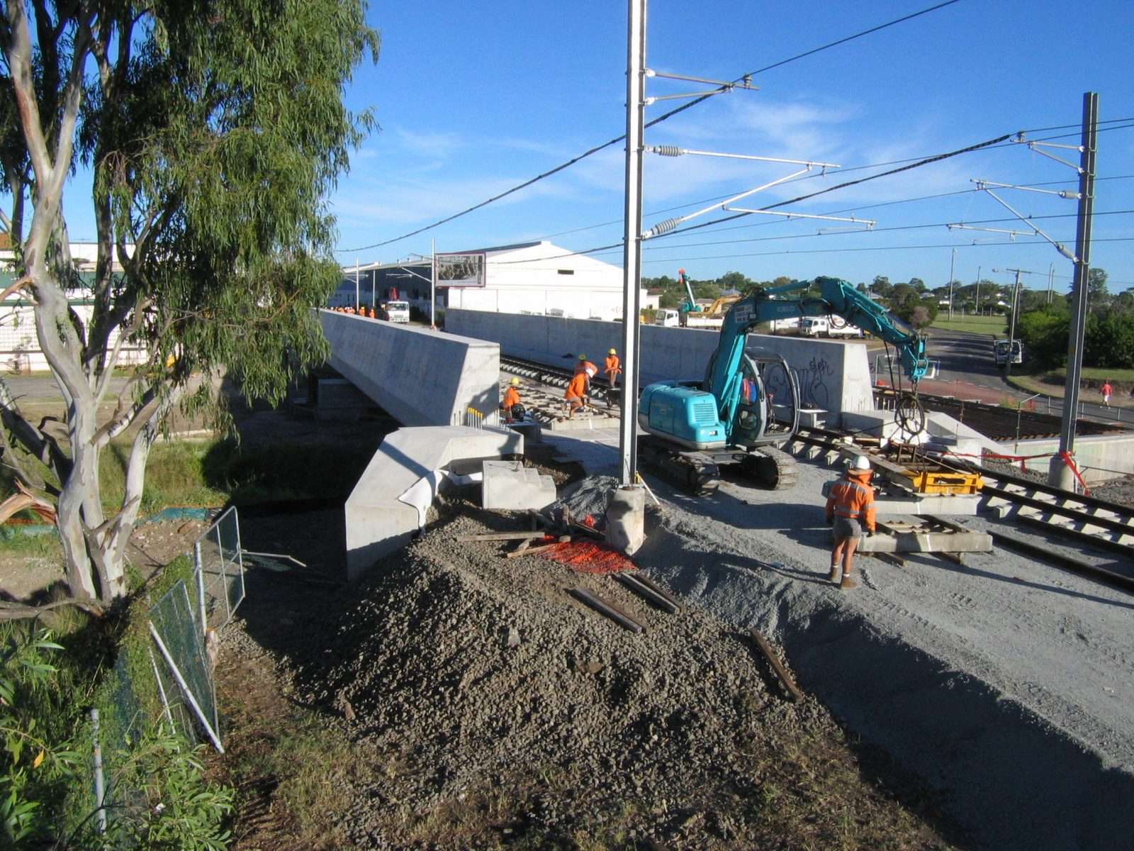 The Wynnum Creek Railway Bridge, at Colina St Wynnum, was reconstructed as part of Queensland Rail’s Timber Bridge Replacement Program. The existing bridge was a 9 span timber bridge with a 2 span post-tensioned concrete bridge. This was replaced with a 2 span post tensioned concrete bridge which had to be constructed adjacent to the existing structure to enable continual operation of the train services along the Cleveland line.